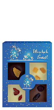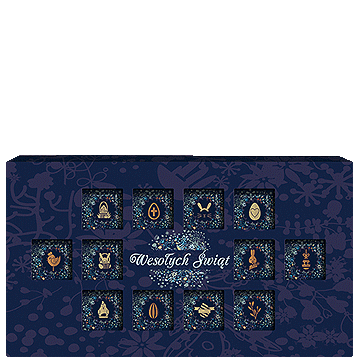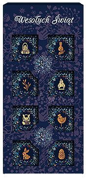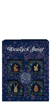| Seria Granatowe Symbole Wielkanocne - czekoladki w owijkach-etykietach |